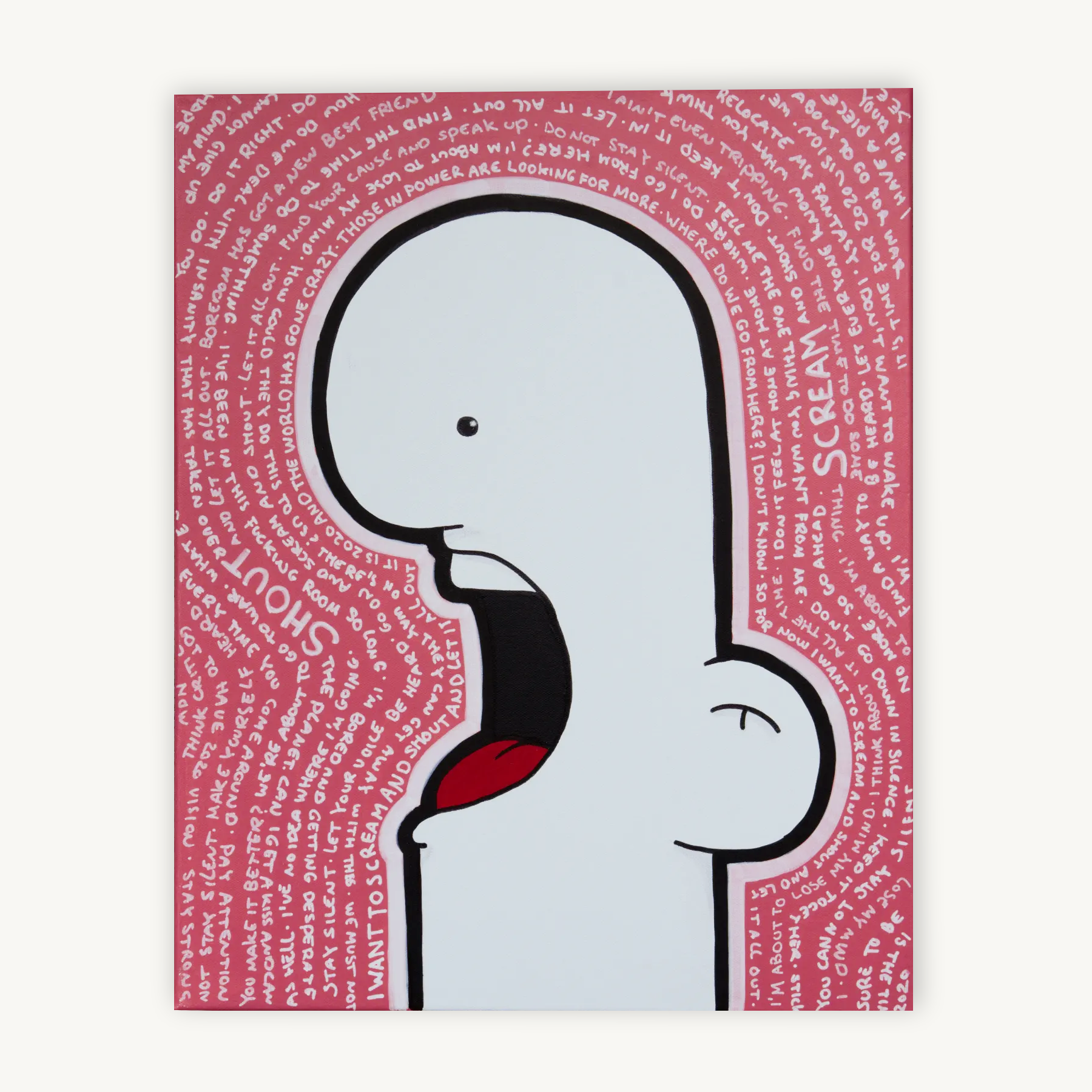 In Shouter vs 2020, the Shouter channels a raw expression of frustration, capturing the intensity of a year defined by the Covid pandemic. This piece conveys the stress, disruption, and resilience felt by many in 2020, reflecting a unique moment in time through the Shouter’s bold persona. With its powerful narrative and striking imagery, Shouter vs 2020 brings a sense of shared experience to any collection.